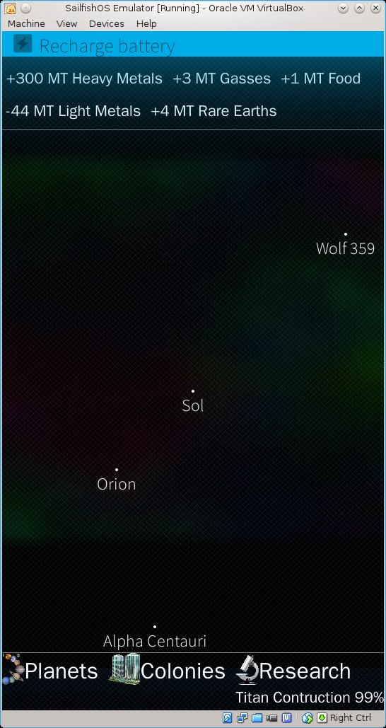 A space-themed strategy game I am working on. The server is written in D and is mostly ready at this time. The initial client is for Jolla's Sailfish OS and is written in C++/QML.