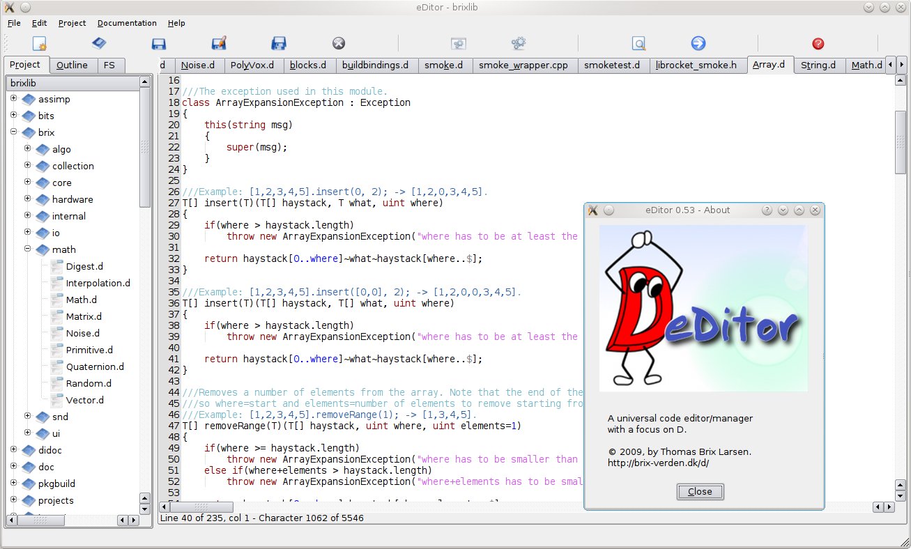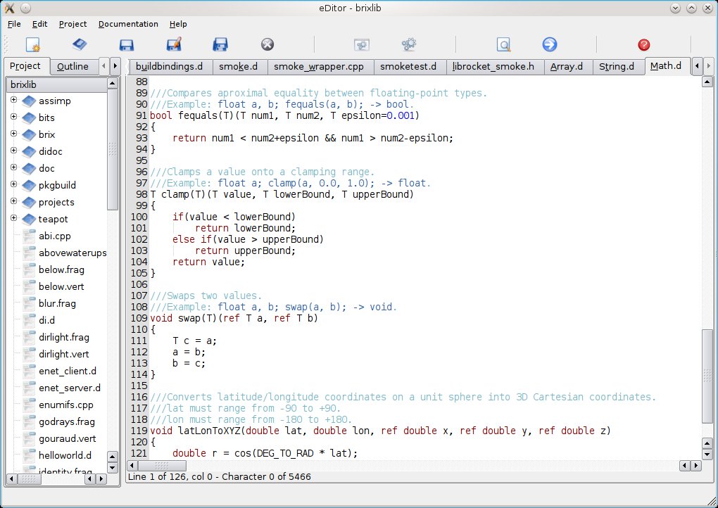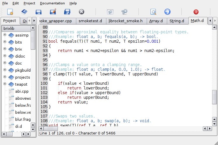 eDitor was one of my first projects in Qt. It is fully working and I used it as my primary editor until D 2.0 was released.